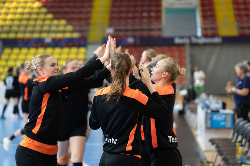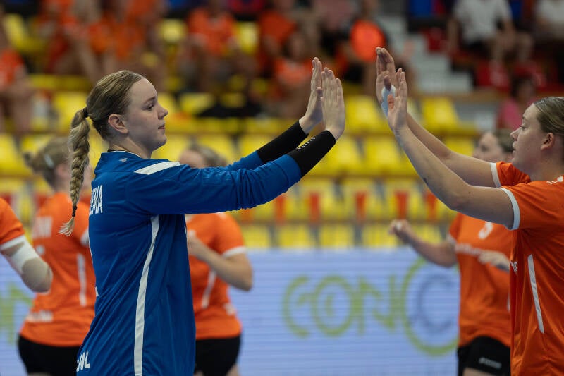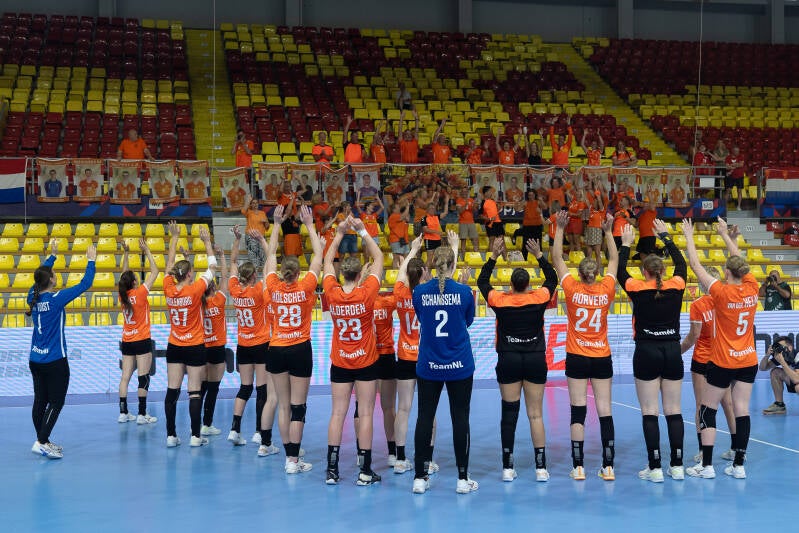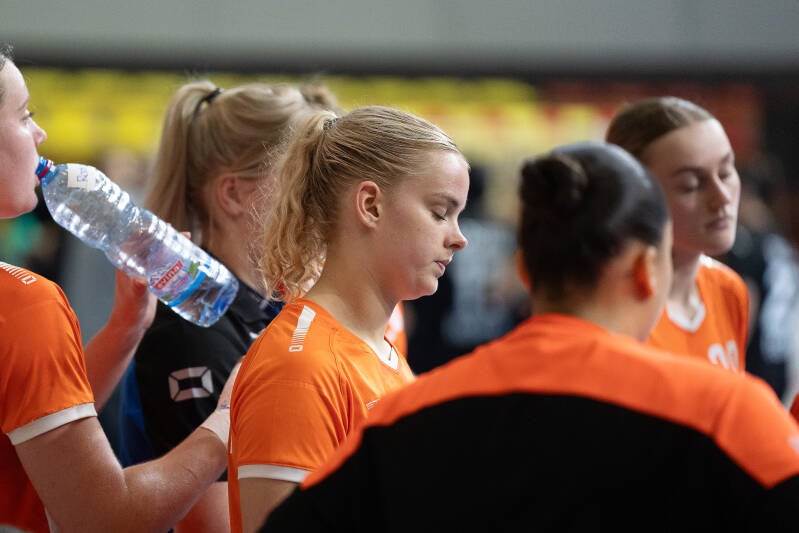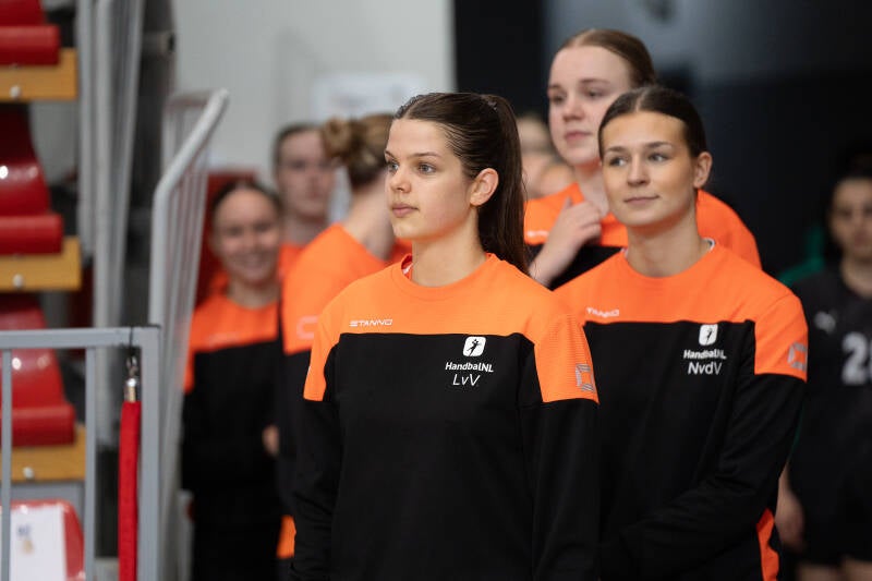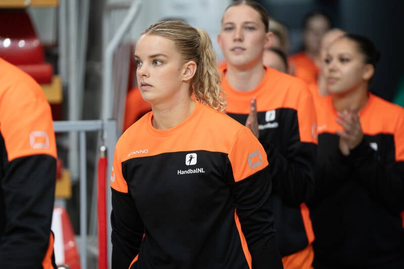 23.Rozemarijn Alderden OTTO Work Force/VOC Amsterdam 9..Donna Bakker OTTO Work Force/VOC Amsterdam 22. Nomi in de Braekt Geonius/V&L 3. Lynn van Diepen Westfriesland/SEW 5.Judith van der Helm OTTO Work Force/VOC Amsterdam 28. Lisa Hölscher Juro Unirek/VZV 15. Lynn Holtman Westfriesland/SEW 24. Maud Horvers OTTO Work Force/VOC Amsterdam 7.Jalisha Loy OTTO Work Force/VOC Amsterdam 11. Daphne Luchies OTTO Work Force/VOC Amsterdam 21.Romée Maarschalkerweerd OTTO Work Force/VOC Amsterdam 14. Alieke van Maurik OTTO Work Force/VOC Amsterdam 37. Fenna Muilenburg TuS Lintfort (GER) 12. Bianca Schanssema København Håndbold (DEN) 38. Paris Scholten PCA/Kwiek 16 .Loïs van Vliet OTTO Work Force/VOC Amsterdam 1. Nikki van der Vorst OTTO Work Force/VOC Amsterdam